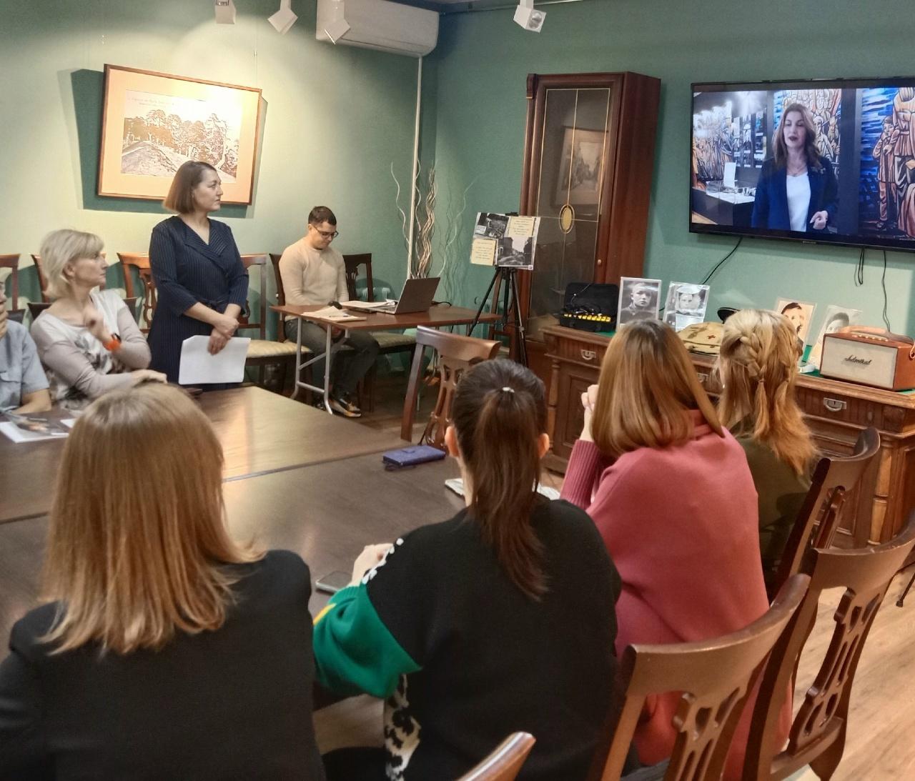 приняла участие в Круглом столе по итогам проекта «Квест-реконструкция «Навстречу Победе». Проект реализуется при поддержке Президентского фонда культурных инициатив. На Круглом столе представители команды проекта поделились опытом , как он осуществлялся от идеи до реализации, продемонстрировали то что было сделано на этапах, рассказали о результатах. Присутствующим на мероприятии представителям Центральной библиотечной системы Городецкого округа, Городецкого Губернского колледжа и Заволжского автомоторного техникума в подарочных пакетах были вручены очерки о героях-земляках А.В Ворожейкине и Н.И Барышеве. Безусловно, эти книги, которые пополнят фонды детских библиотек и библиотек средних специальных учебных заведений Городецкого округа, помогут формировать у подрастающего поколения гордость за Героев малой Родины.